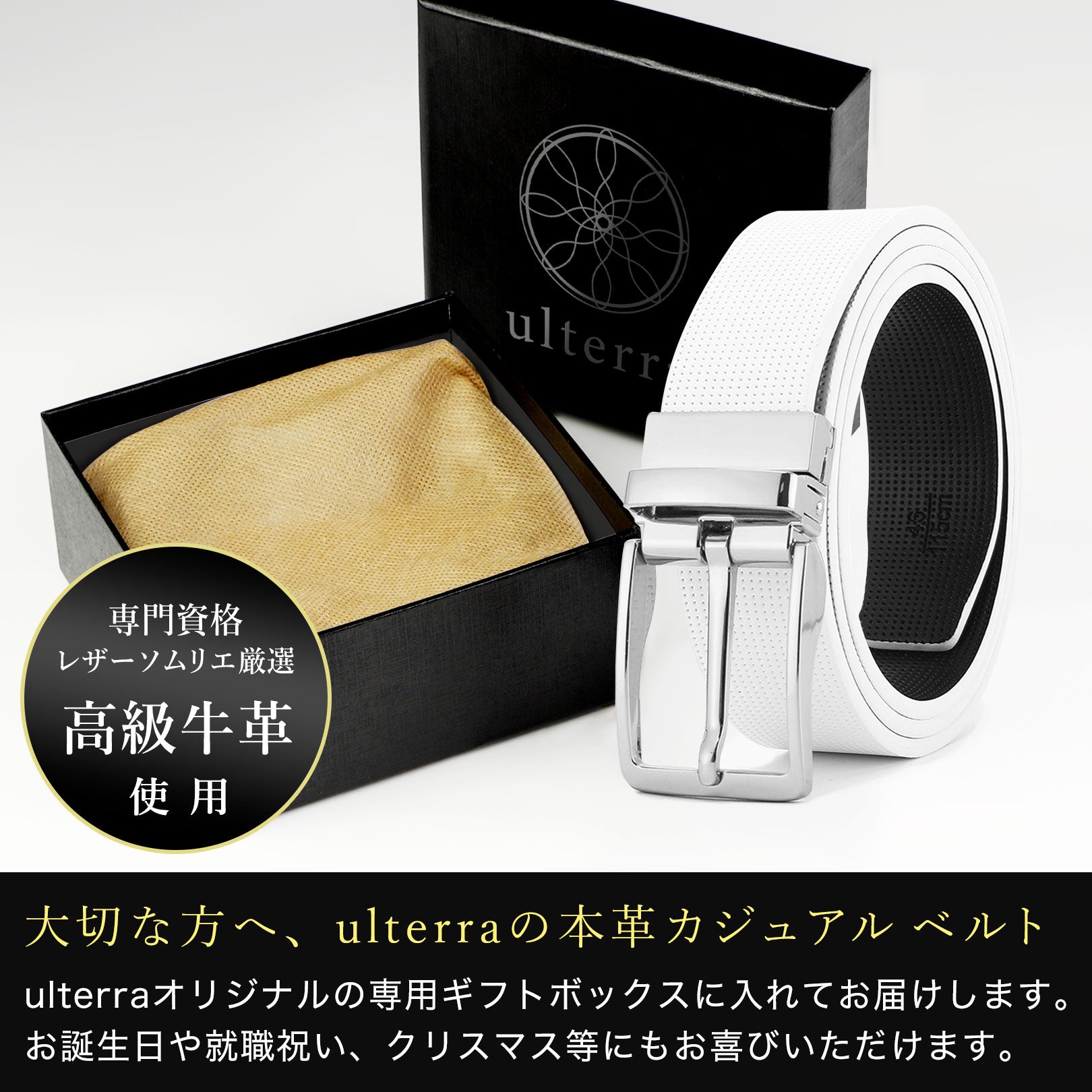 高品質の本革素材とスタイリッシュなデザインでプレゼントにもおすすめです。本革ベルトにはもれなく専用のギフトBOXが付属。高校生、大学生などの学生や、サラリーマン、ビジネスマンなど社会人の大人の方、シニアの方などあらゆる男性へのギフトに最適です。長さも120cmと大きめで体型を選びません。父の日や誕生日、クリスマスやバレンタインなどの特別な日のプレゼントにぜひulterra(ウルテラ)の本革ベルトをご利用ください。