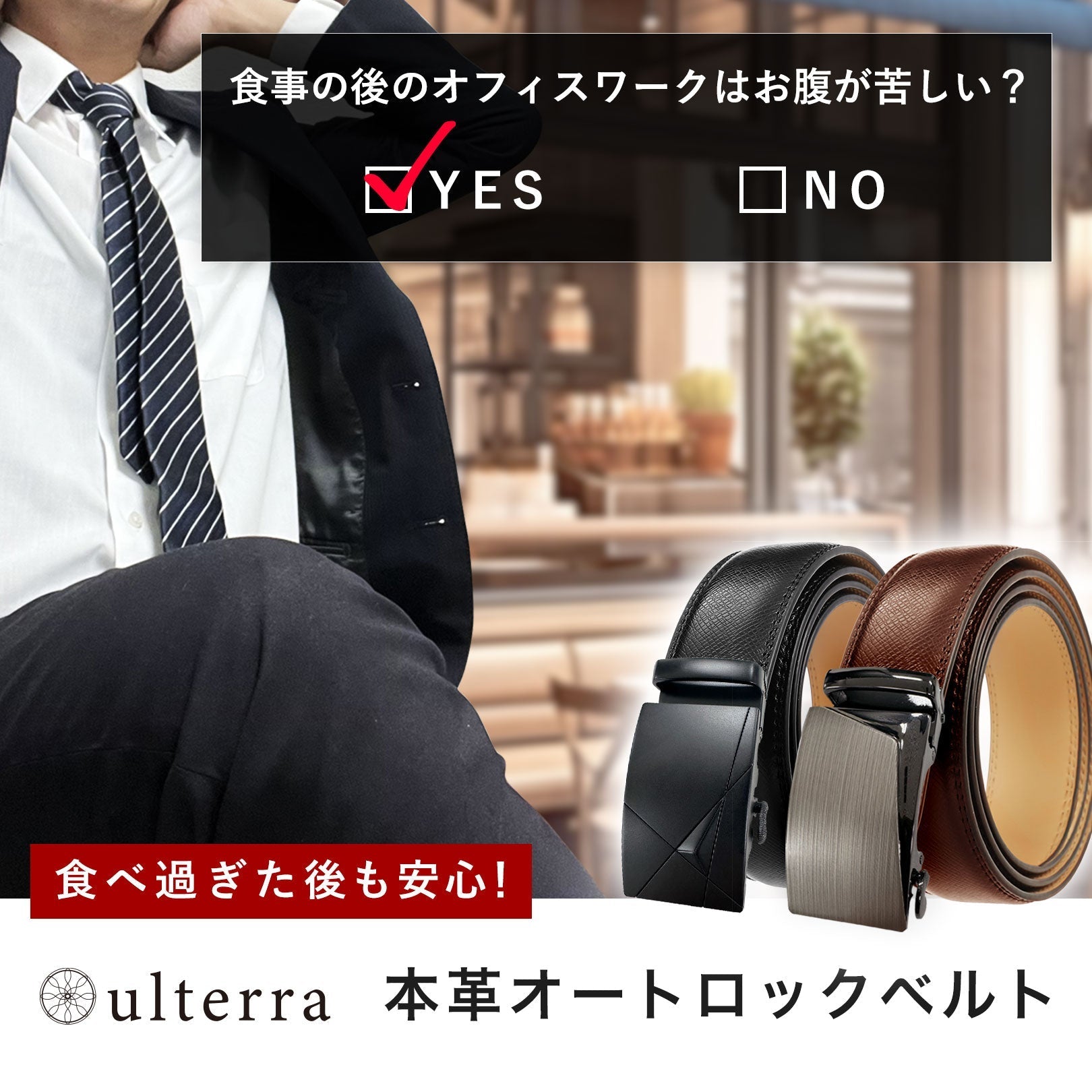 オートロックベルトオートロックベルト ulterraはterra(世界中)からultra(本当に素晴らしいもの)を届けたいという思いから誕生しました。ulterraは商品の開発と提供を通して真の豊かさに貢献していきます。 ミリ単位の調整でかつてないフィット感 ulterraのオートロックベルトは5㎜幅の間隔で調整できるので大きすぎたり、小さすぎるということもなく、常にジャストで快適な着用感を得ることが出来ます。 今までのメンズベルトではかなわなかったこの快適さをぜひお試しください。 ONからOFFまで、シーンを選ばないデザイン バックルのデザインは豊富な13バリエーションを取り揃えています。 スーツなどのビジネスの場でも、フォーマルやカジュアルの場でも、落ち着きのあるシンプルでスタイリッシュなデザインは男性をスマートに引き立てます。 肉厚で耐久性バツグンの厳選素材を使用 天然皮革に限りなく近い外観と質感を持ち合わせた厳選のPU素材を使用。 肉厚で耐久性や耐傷性に優れていて、長期間の着用でも劣化しにくくなっています。...