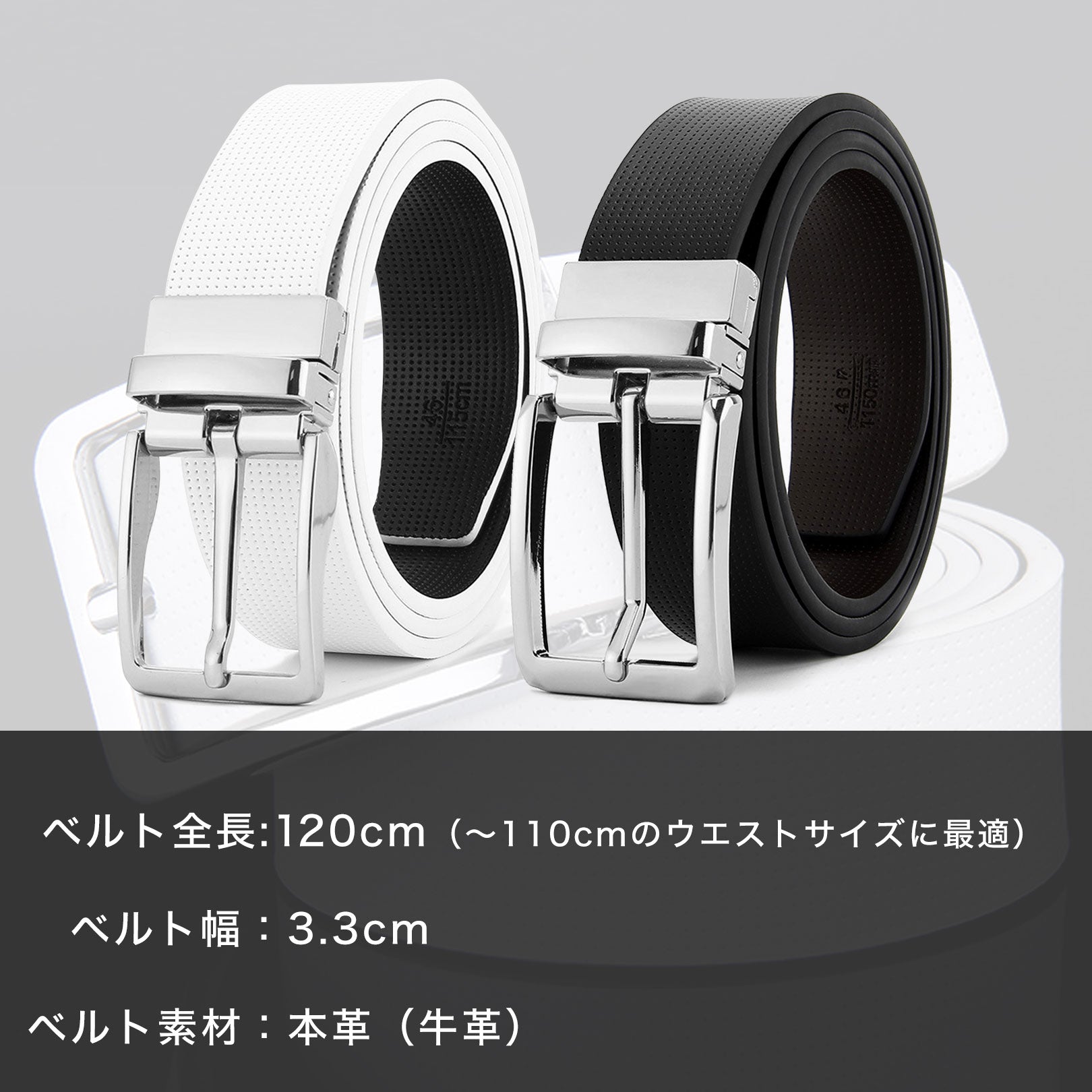 ベルト全長:120cm(ウエスト~110cmに最適) ベルト幅:3.3cm ベルト素材:本革(牛革)
